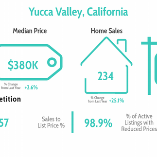 Yucca Valley | 234 | +25.1% | $379,500 | +2.6% | 57 | 22% |
